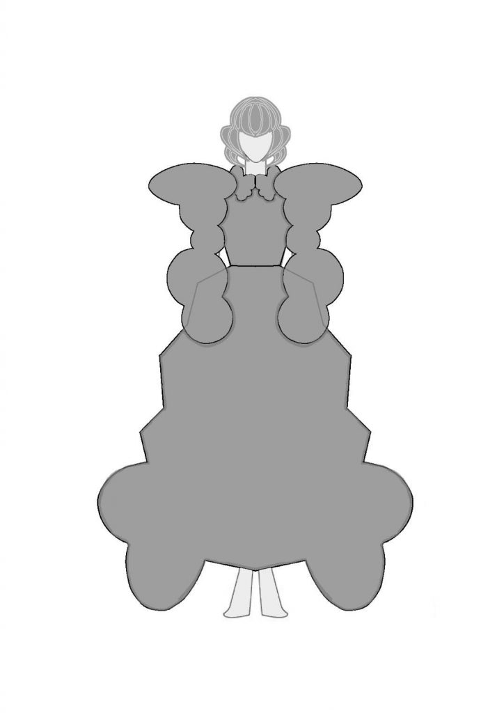 投影の観点から、正面からご覧いただいた際にできるだけ平面に見えるようデザインしており、シルエットのみで意味を持たせる構成としております。