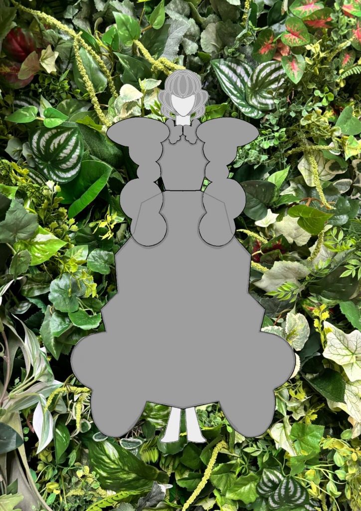 一見すると植物の中にたたずむグレー色の大きなドレス。